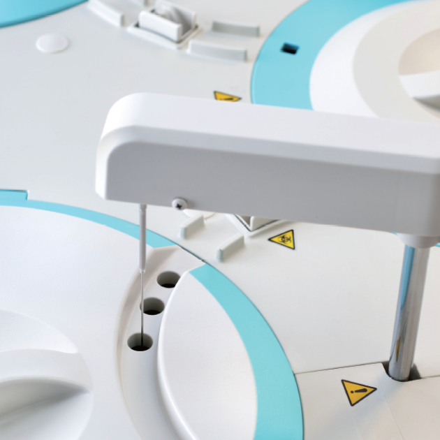nalisador automático para realização de testes bioquímicos, imunoturbidimétricos (proteínas plasmáticas) e eletrólitos com capacidade de processamento de 420 testes fotométricos/hora ou 626 testes/hora com módulo ISE.