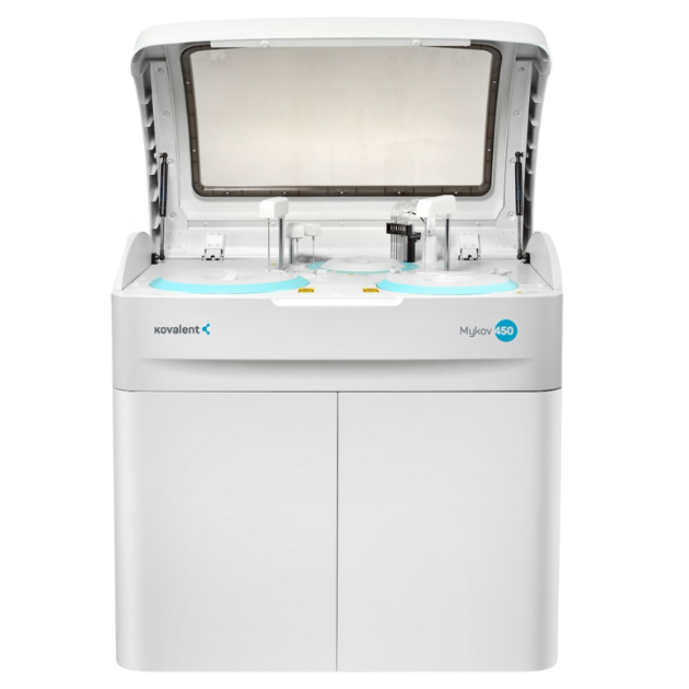 nalisador automático para realização de testes bioquímicos, imunoturbidimétricos (proteínas plasmáticas) e eletrólitos com capacidade de processamento de 420 testes fotométricos/hora ou 626 testes/hora com módulo ISE.