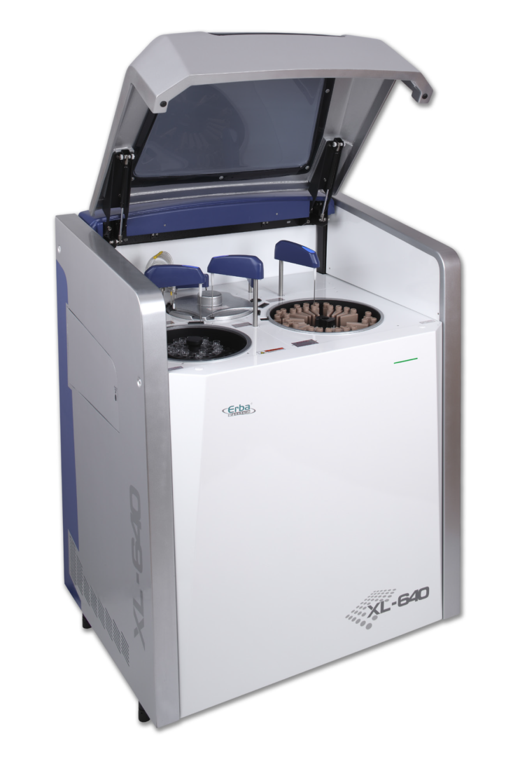 Analisador de Química Clínica Totalmente Automatizado. Uma vez programado, o analisador é um sistema walk-away. Os recursos são fáceis de usar com intervenção mínima do operador. O analisador é composto por um fotômetro e uma robótica sofisticada combinados com um console operacional e uma unidade de processamento de dados (DPU). A DPU no analisador fornece um cronograma para o analisador, após executar o cronograma conforme a sequência programada, os resultados fotométricos são então enviados para o computador conectado ao analisador, onde são processados, armazenados e depois reportados.